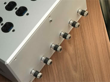 Despite its robust construction, the Sovereign weighs under 12 kg. The front panel provides six Furutech binding posts for establishing a common chassis and/or system ground, along with a power LED adjustable to three brightness levels: bright, dim, or off. In keeping with our minimalist design philosophy, the front panel remains free of logos, allowing the Sovereign to integrate discreetly into any system aesthetic without visual distraction.